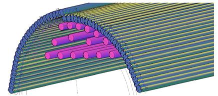 針對(duì)本工程下穿(深圳)地鐵3號(hào)線,暗挖隧道沉降控制高要求和現(xiàn)場(chǎng)地質(zhì)、水文、環(huán)境的實(shí)際情況,拱部采用“雙排水平旋噴帷幕+(帷幕間)159mm超前大管棚”綜合施工工法進(jìn)行超前與支護(hù),掌子面上臺(tái)階施做“水平旋噴錨固樁”進(jìn)行地質(zhì)改良、錨固。本支護(hù)里程為DK110+500~460,一次性支護(hù)長(zhǎng)度40米,水平旋噴+管棚綜合支護(hù);水平旋噴帷幕施工采用無(wú)線導(dǎo)向測(cè)控技術(shù),測(cè)量精度為0.1%,施工精度為0.5%;內(nèi)排旋噴樁在隧道開挖線外300mm布孔,外環(huán)旋噴樁在開挖線外800mm布孔,一次施工長(zhǎng)度40米,上仰1%角度預(yù)留施工誤差;設(shè)計(jì)水平旋噴樁樁徑600mm,環(huán)向孔間距400mm,環(huán)間距500mm,孔間搭接200mm,環(huán)間搭接100mm;掌子面施工水平旋噴試驗(yàn)樁和錨固樁,施工長(zhǎng)度和樁徑與拱部帷幕旋噴樁相同;暗挖隧道拱部水平旋噴樁咬合帷幕體中間施工超前大管棚,共同形成拱部超前支護(hù);管棚在開挖線外550mm布孔,鋼管管徑 159mm,厚度6mm,采用內(nèi)套管絲扣連接,連接扣長(zhǎng)不小于70mm,一次施工長(zhǎng)度為40米;超前大管棚采用有線導(dǎo)向測(cè)控,測(cè)量精度0.1%,施工精度為0.3%。